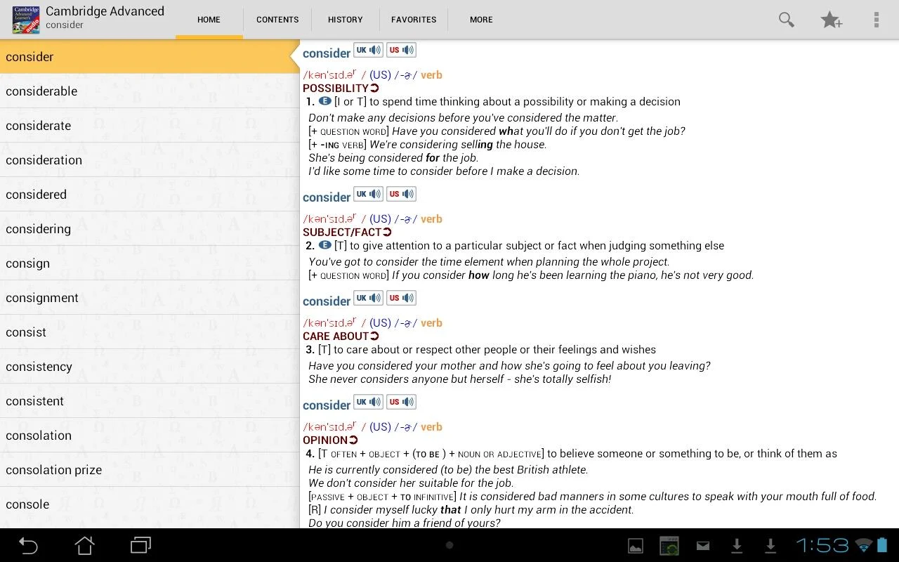 The dictionary app includes a number of features which help you to expand your vocabulary further: