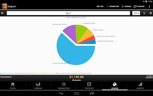 • Visualise the statistics as a table or graph and see where you have spent your money.